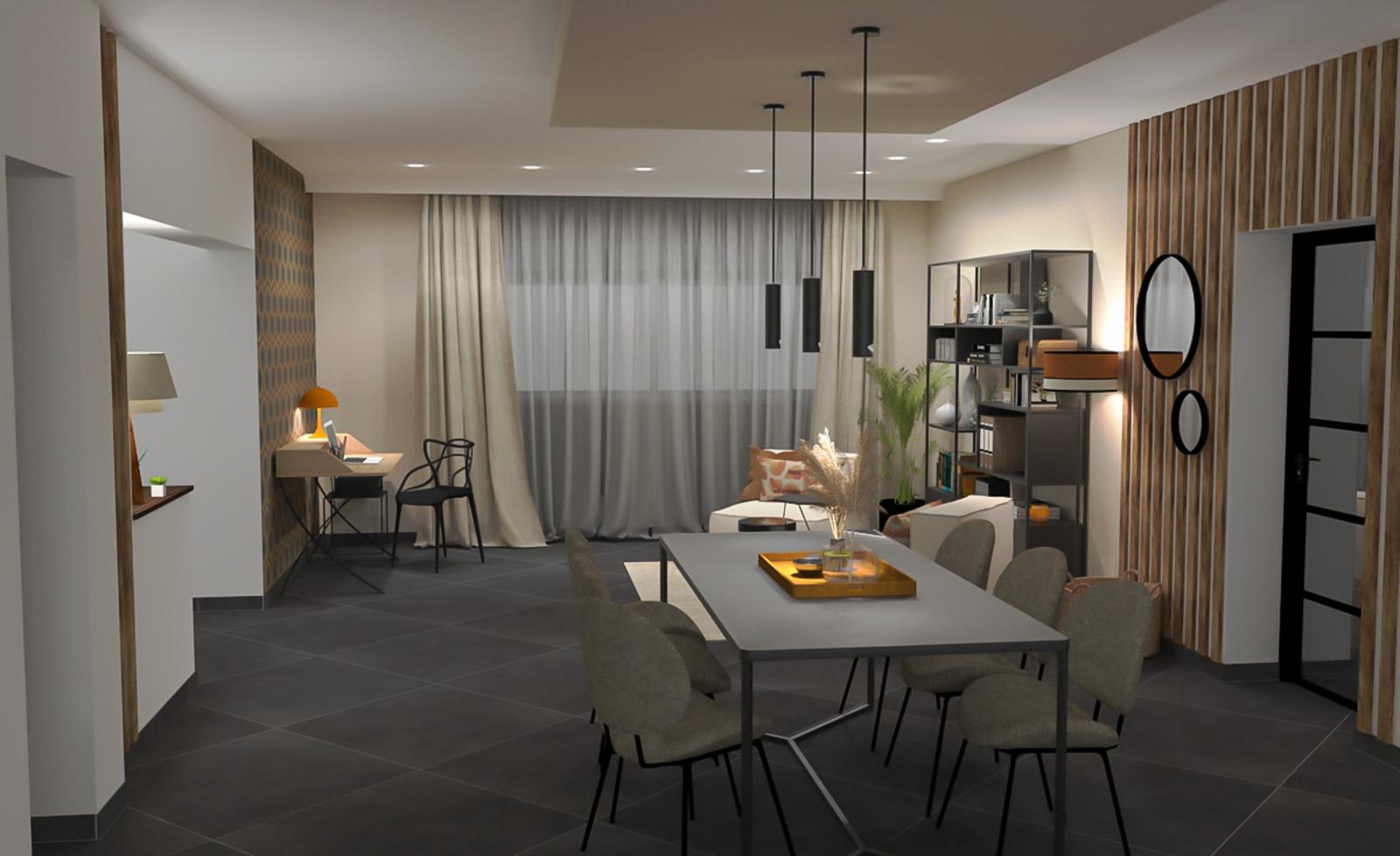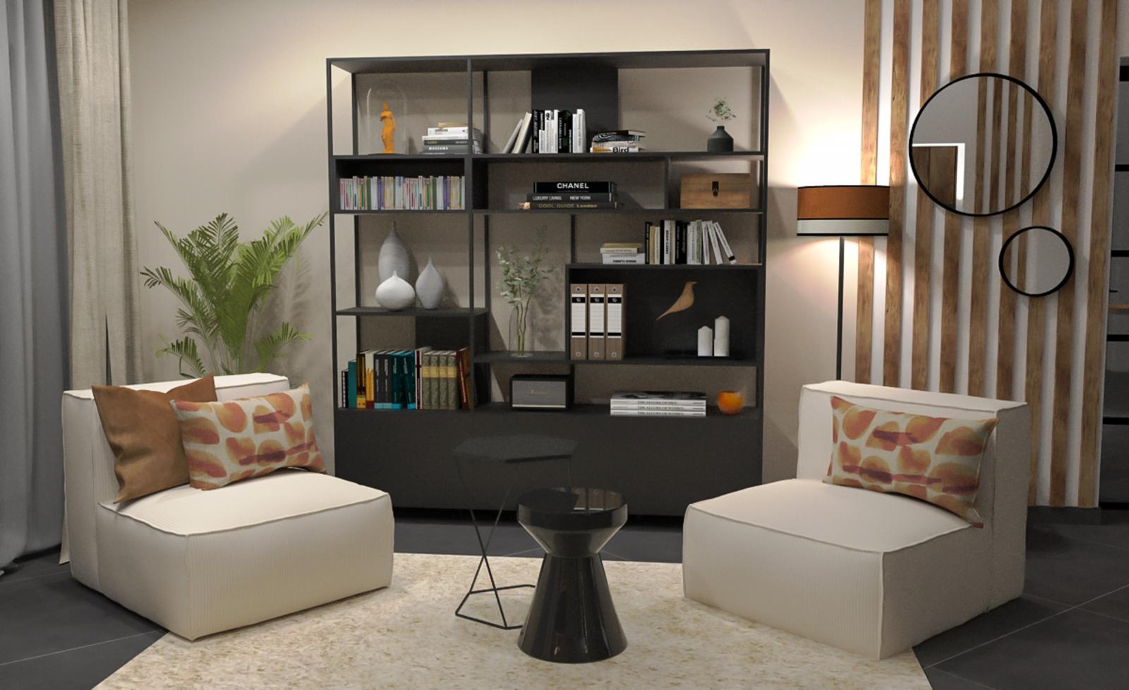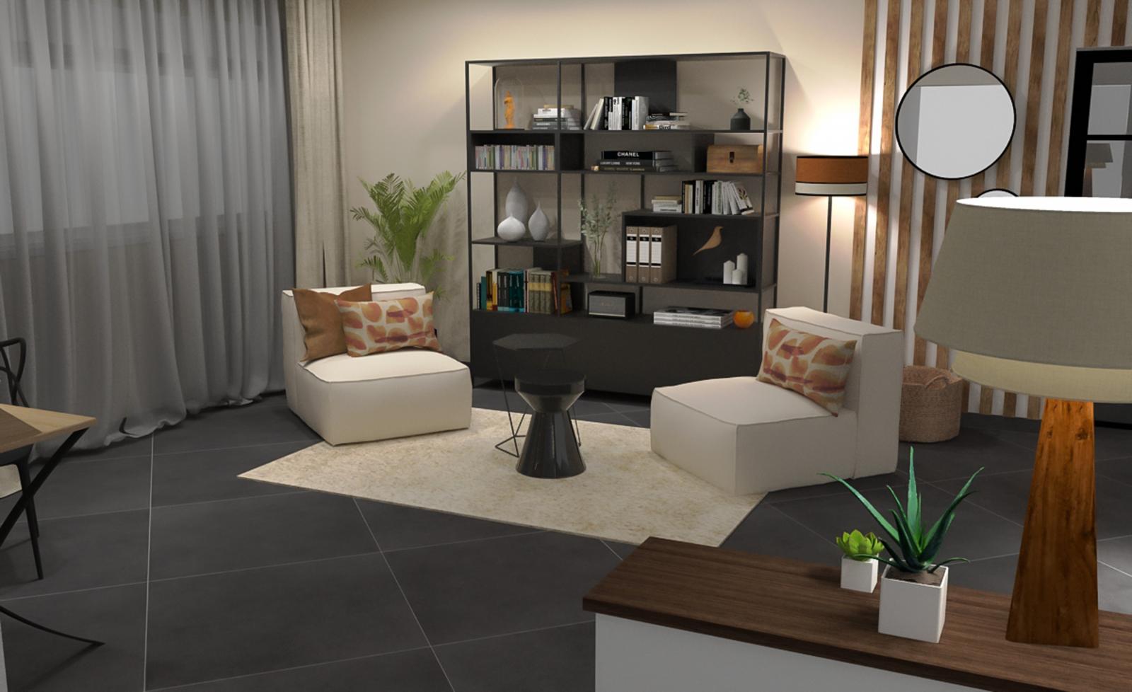 Objectifs:- Finir la décoration existante en aménageant un Espace Détente dans une grande pièce à vivre,- Conserver le style moderne de l'intérieur tout en apportant un peu plus de chaleur et créer une ambiance cosy et confortable.